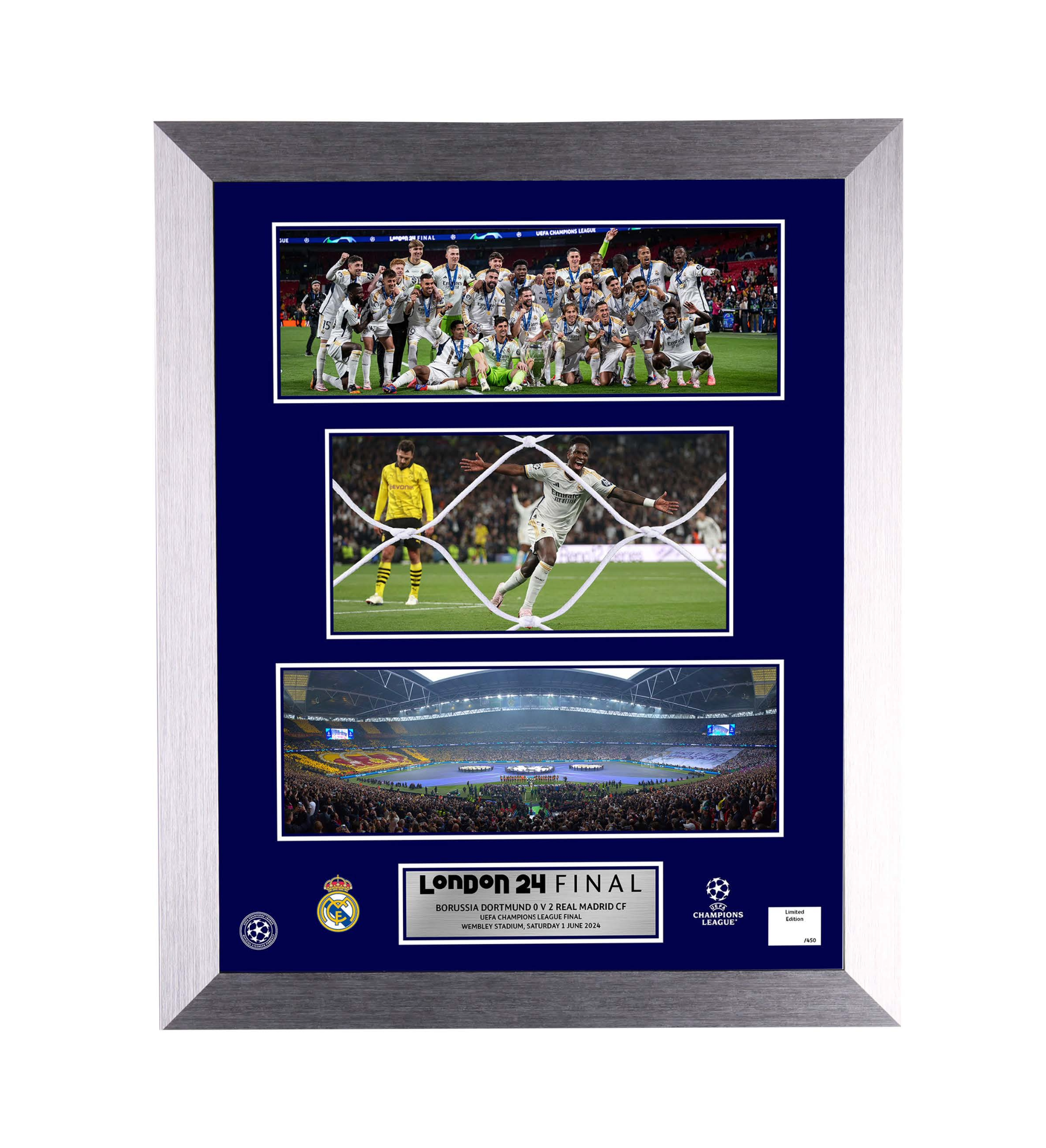 Whilst we get the same yield from your net, this time we’re adding great value by design features and iconic imagery, all laid up into a triple mounted, luxury framed, goal net piece. Dependent on the occasion and gravitas of the result, it’s very common for this product to be flying off the shelves.