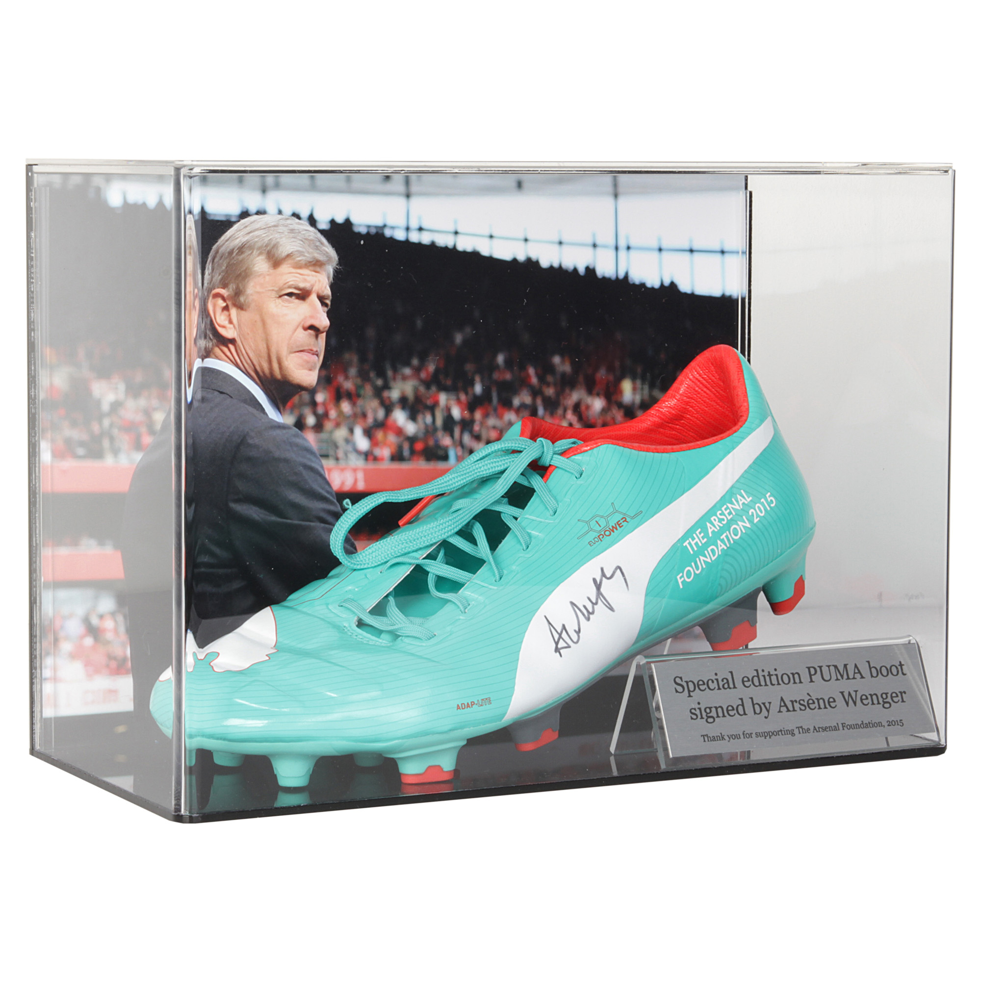 Our Muro case consists of a quality acrylic box with a clear foot riser. Also included are options for metal printed plaques and photographic printed background images.