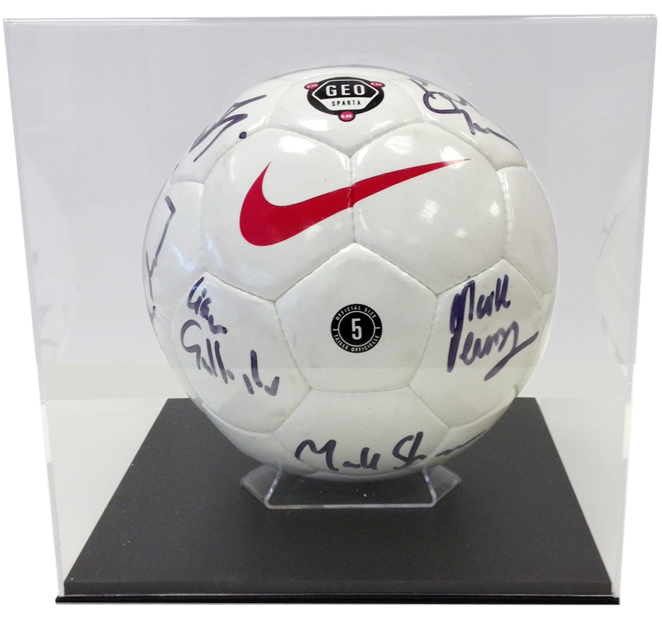 A modern alternative to our classic case. This case consists of a black base with a separate acrylic holder for the ball to sit in.